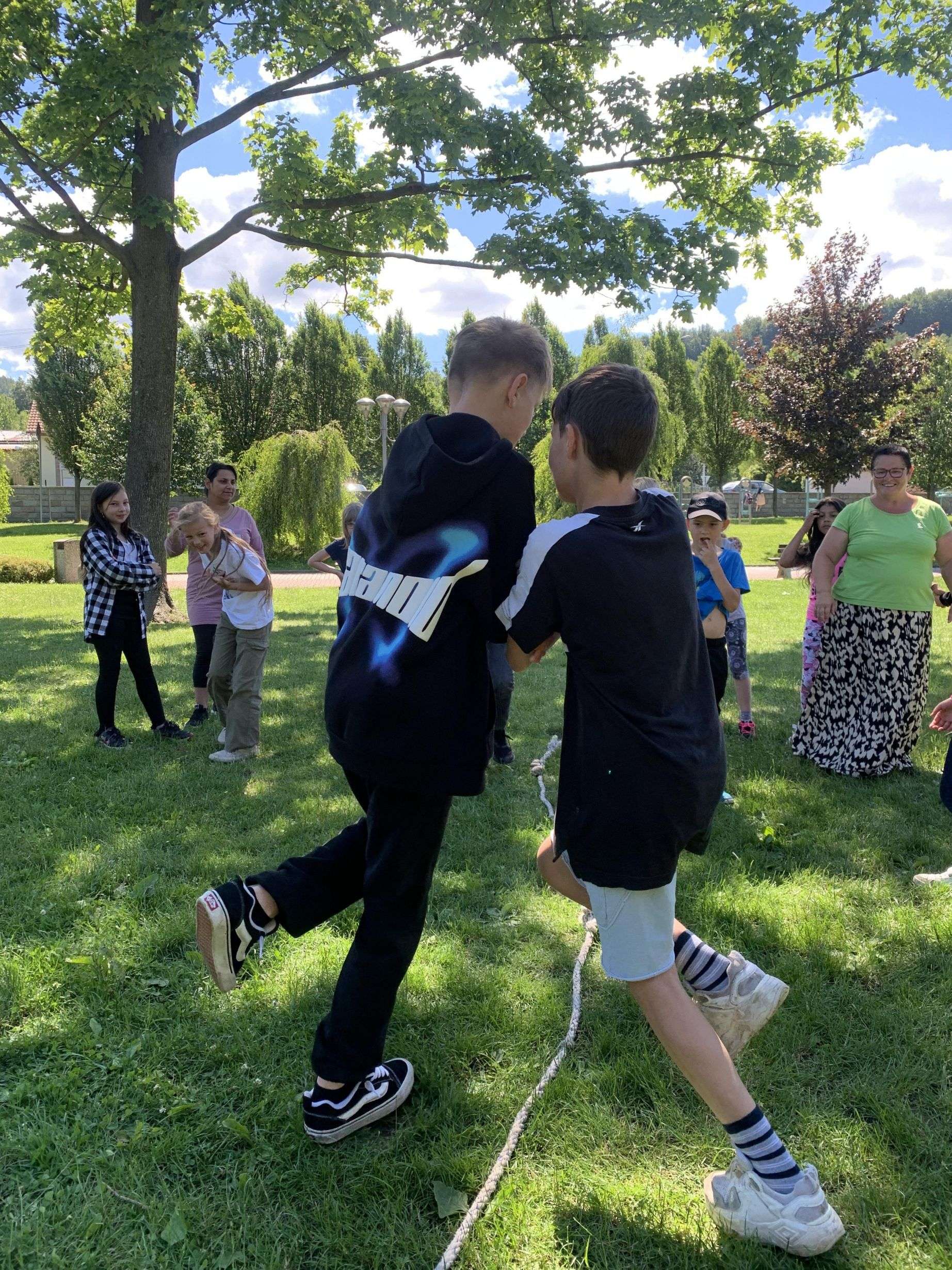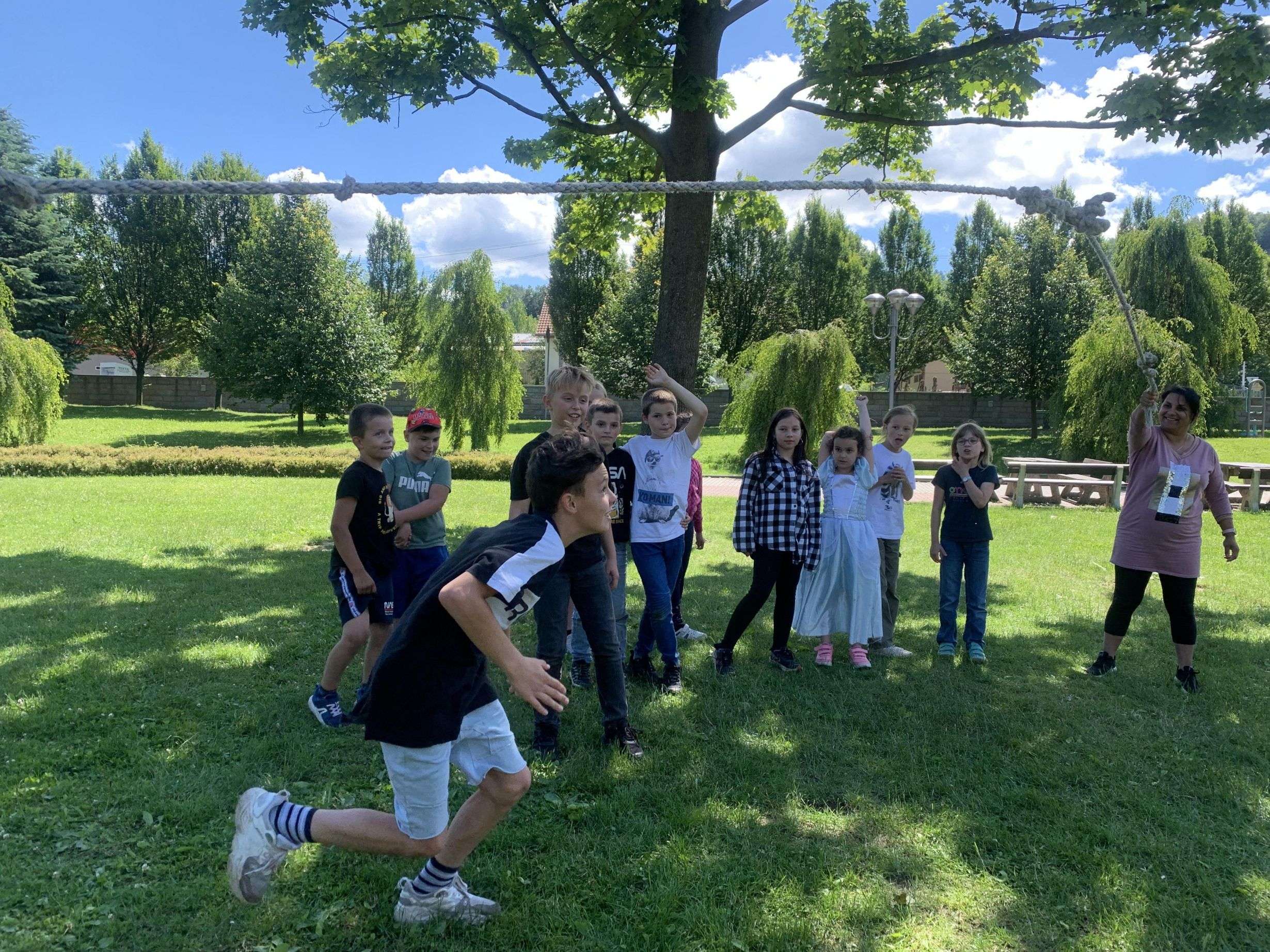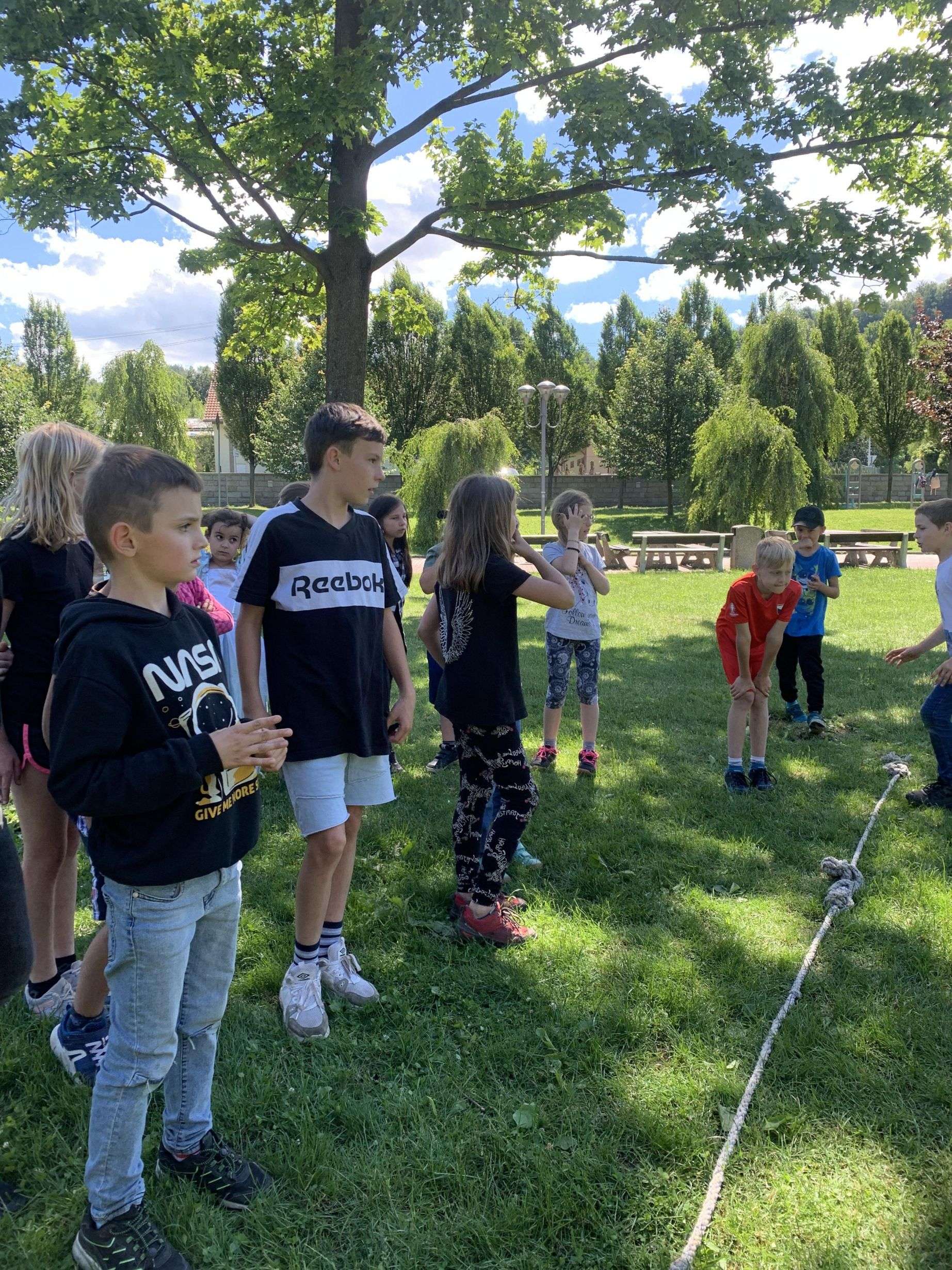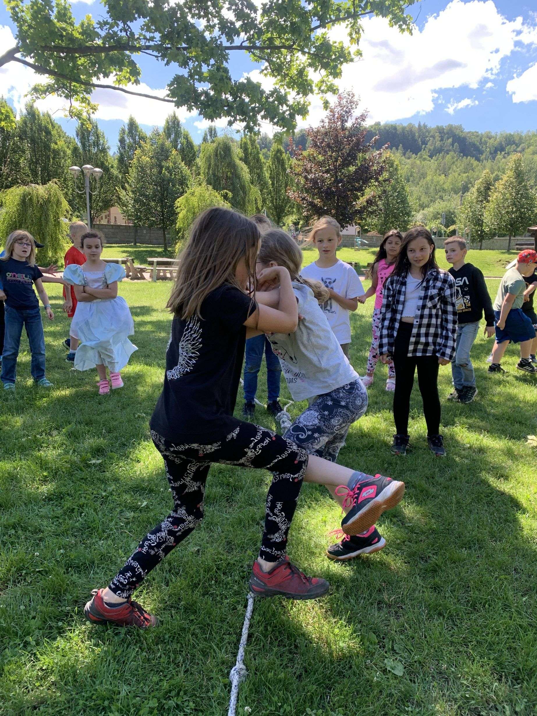MDD – 11.6. jsme si v parku udělali Den dětí. Začali jsme přetahováním lanem, potom děti probíhaly pod roztočeným lanem, soutěžily v družstvech – holky proti klukům, hráli jsme Krvavého dědka, vyvolávanou, hutututu, hry s míčem. Všechny děti dostaly nanuk, sladkosti, dobrůtky a tři vítězové fotbalové kartičky. Počasí se nám vydařilo, děti byly spokojené. Děkujeme za pomoc paní Bagárové a paní Šebestové.