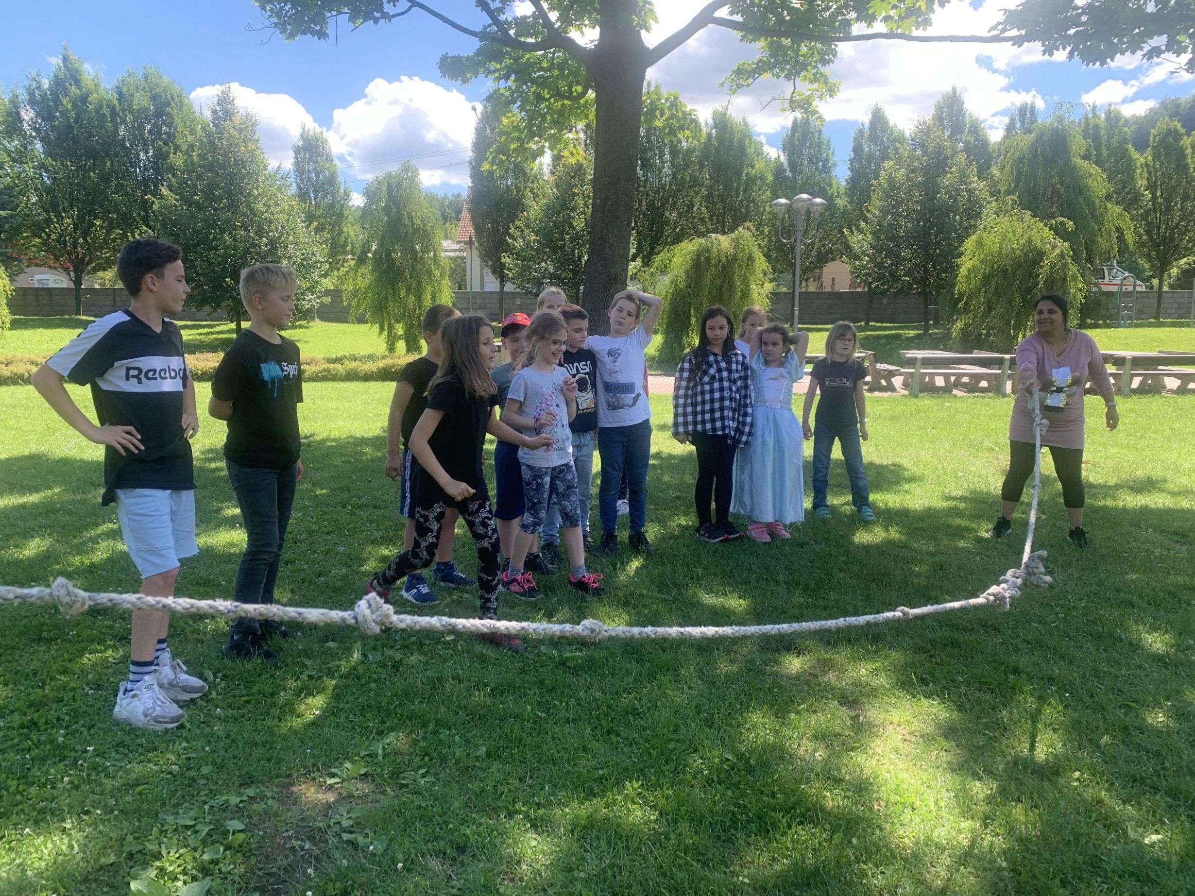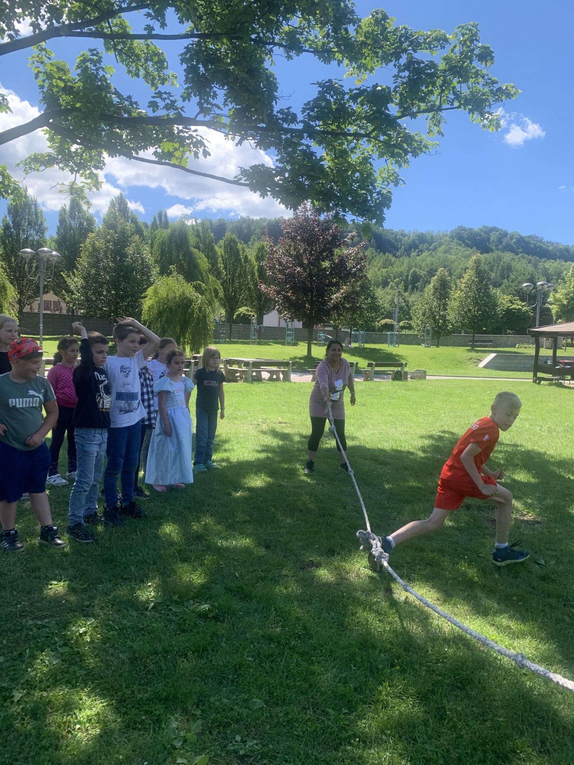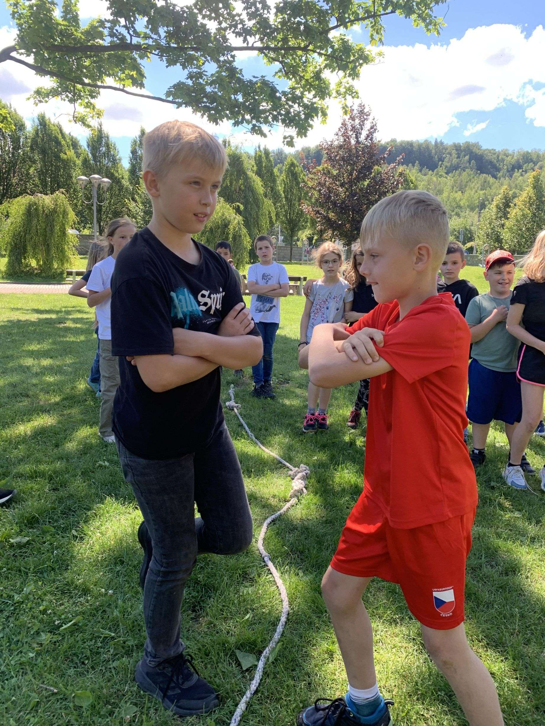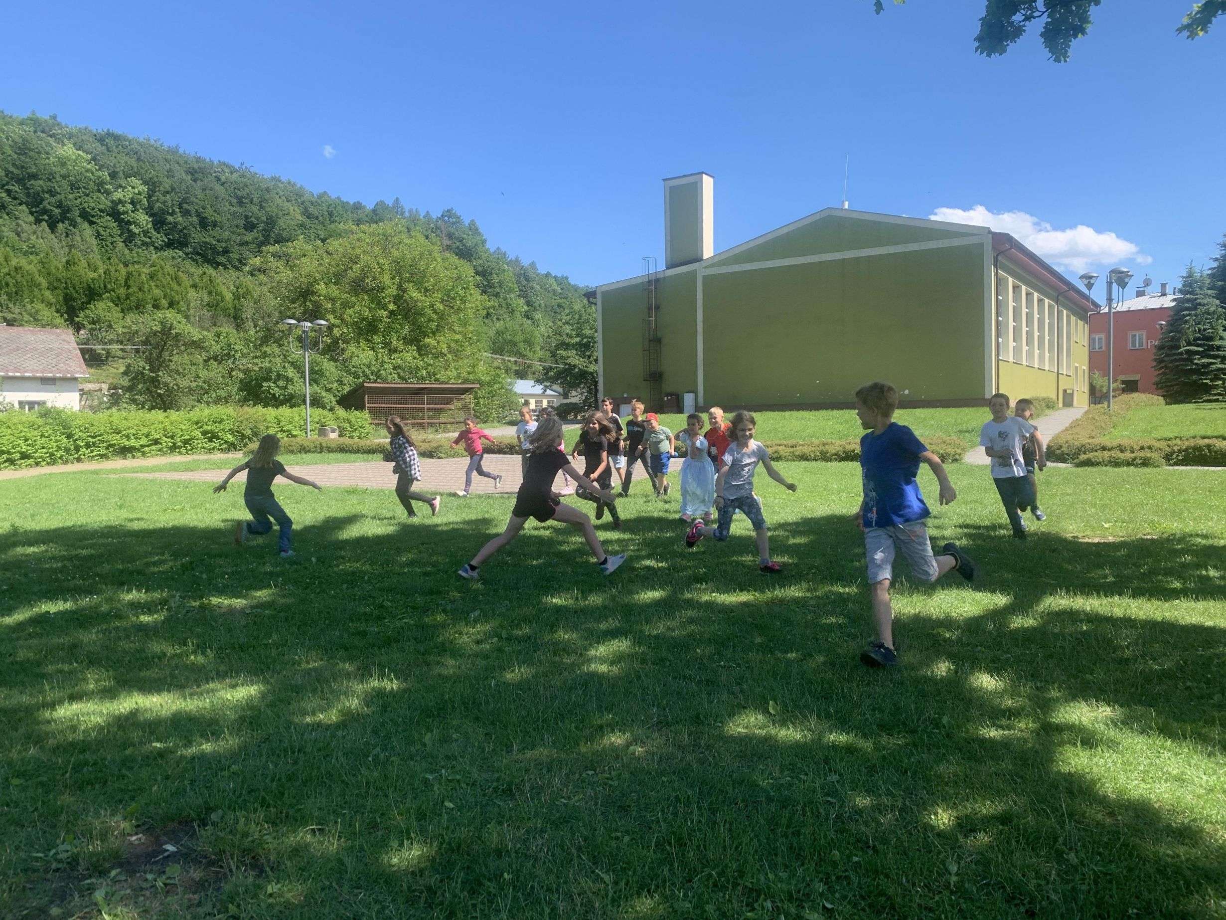 MDD – 11.6. jsme si v parku udělali Den dětí. Začali jsme přetahováním lanem, potom děti probíhaly pod roztočeným lanem, soutěžily v družstvech – holky proti klukům, hráli jsme Krvavého dědka, vyvolávanou, hutututu, hry s míčem. Všechny děti dostaly nanuk, sladkosti, dobrůtky a tři vítězové fotbalové kartičky. Počasí se nám vydařilo, děti byly spokojené. Děkujeme za pomoc paní Bagárové a paní Šebestové.