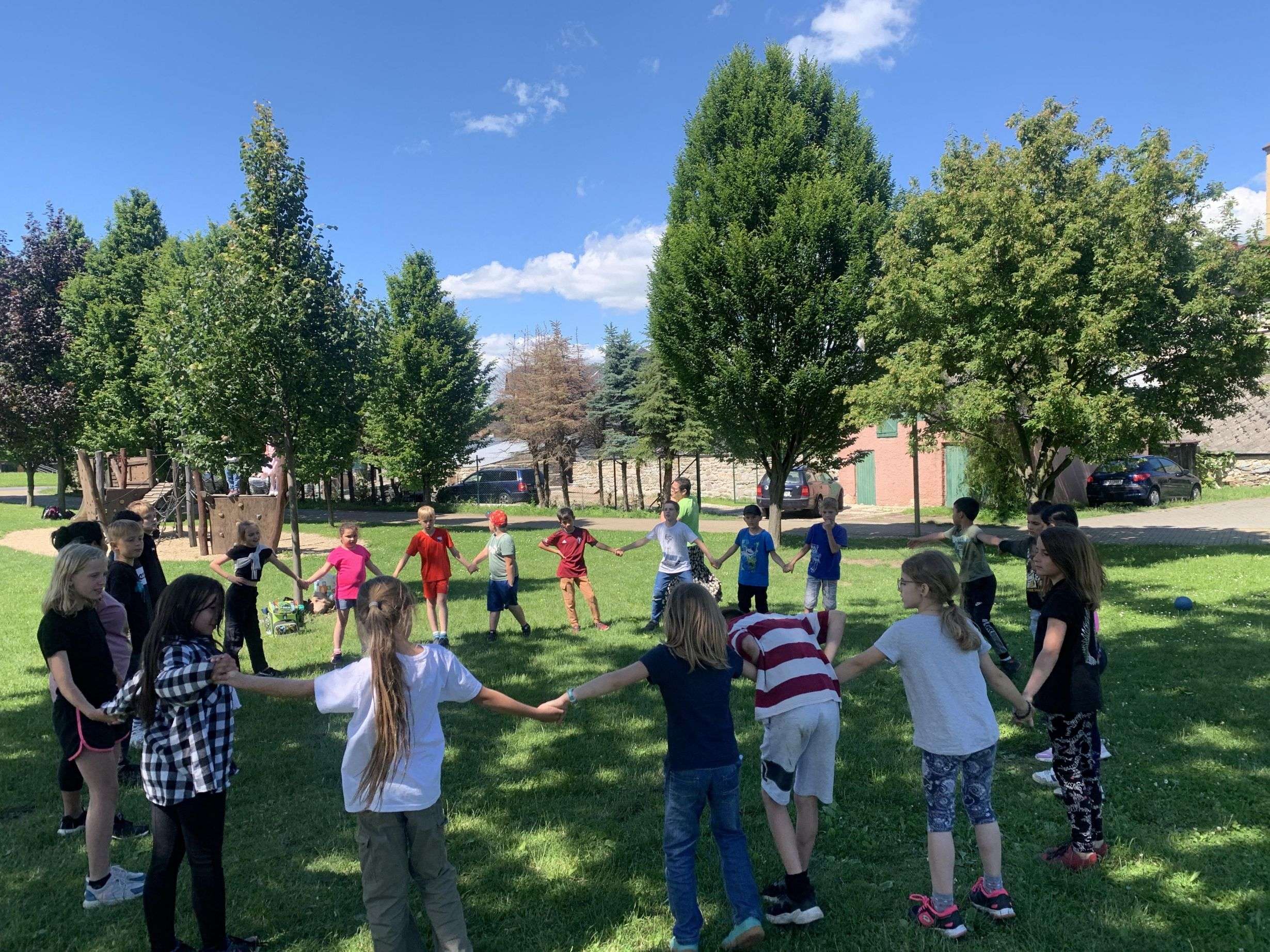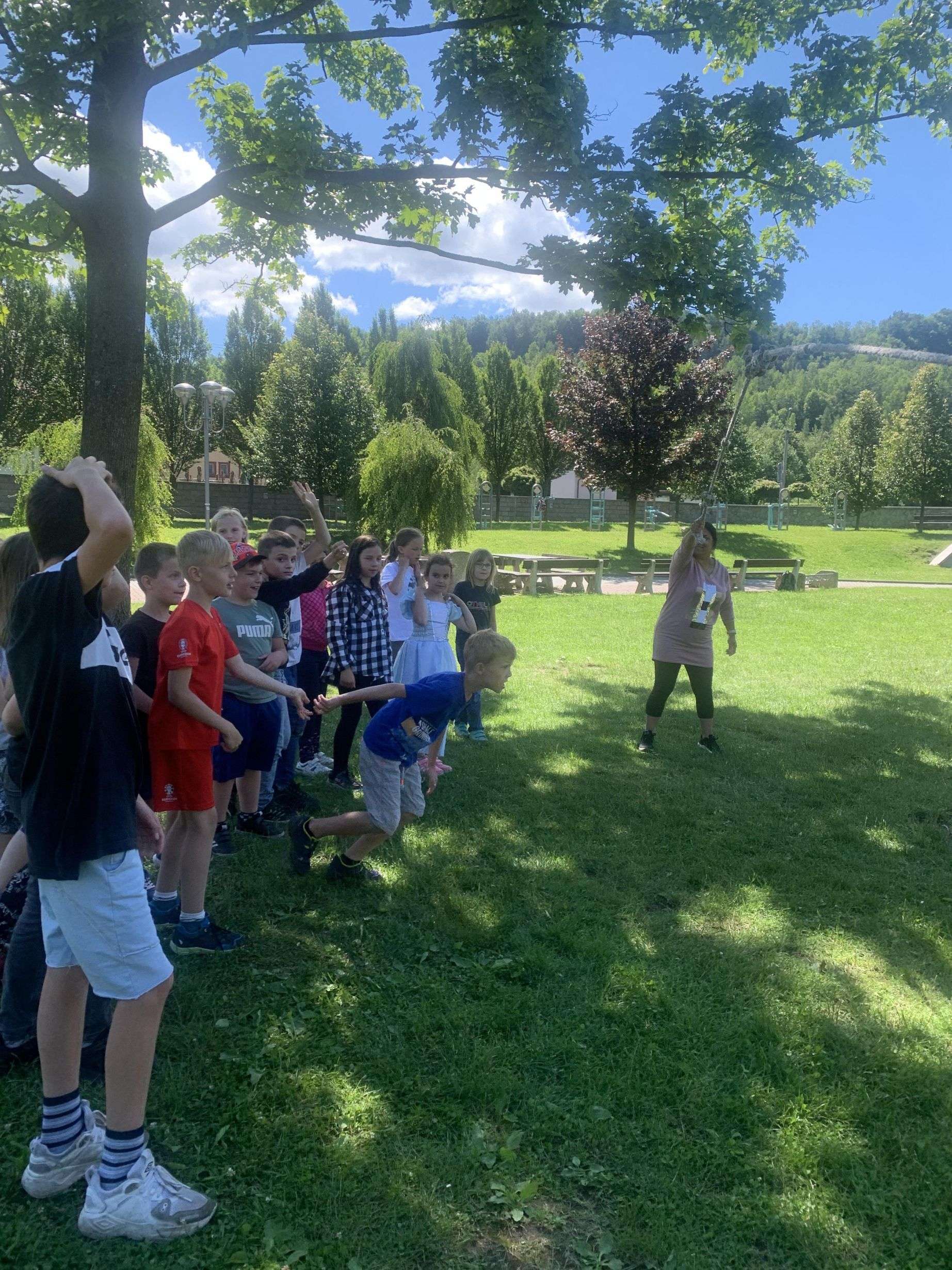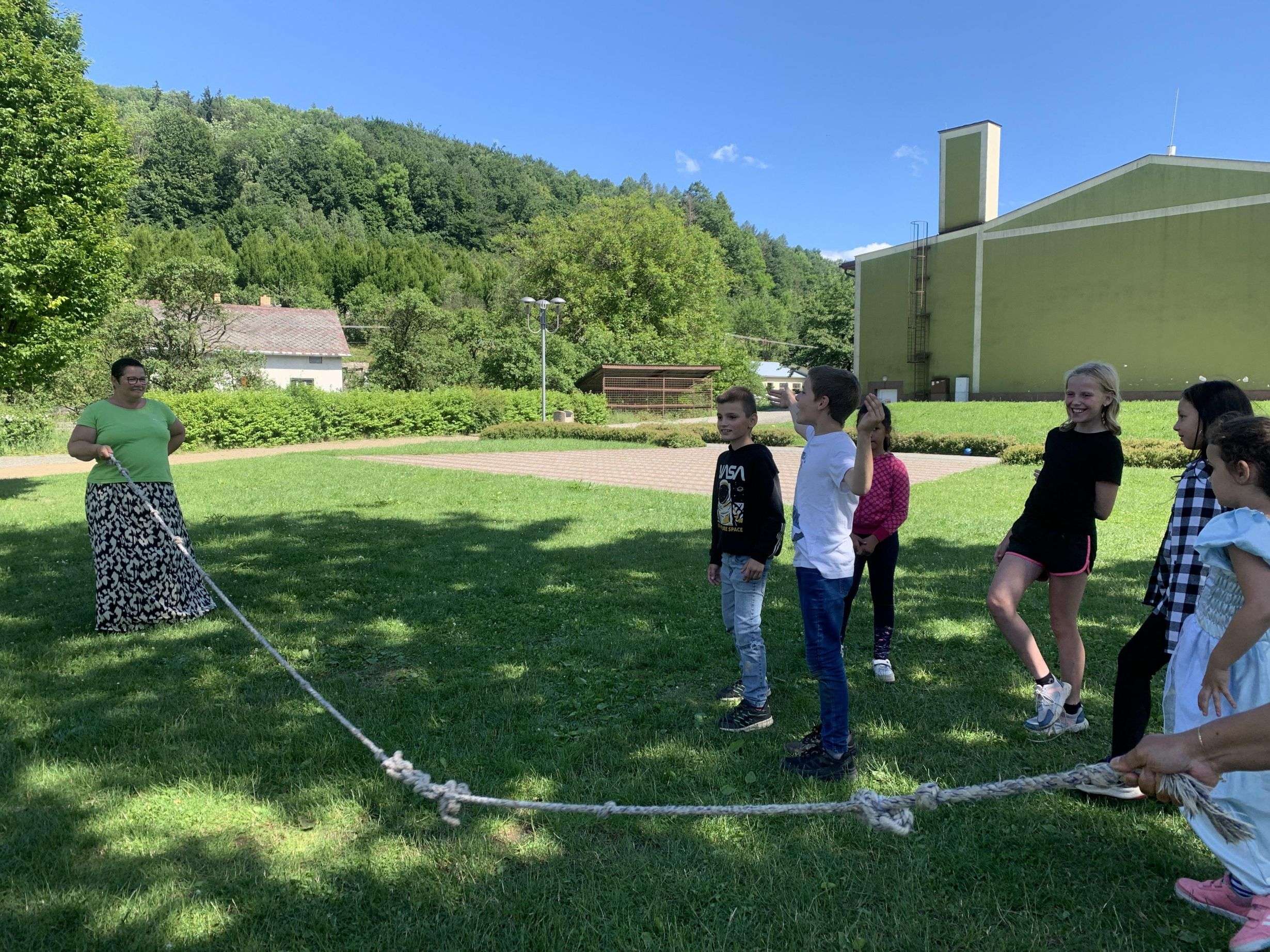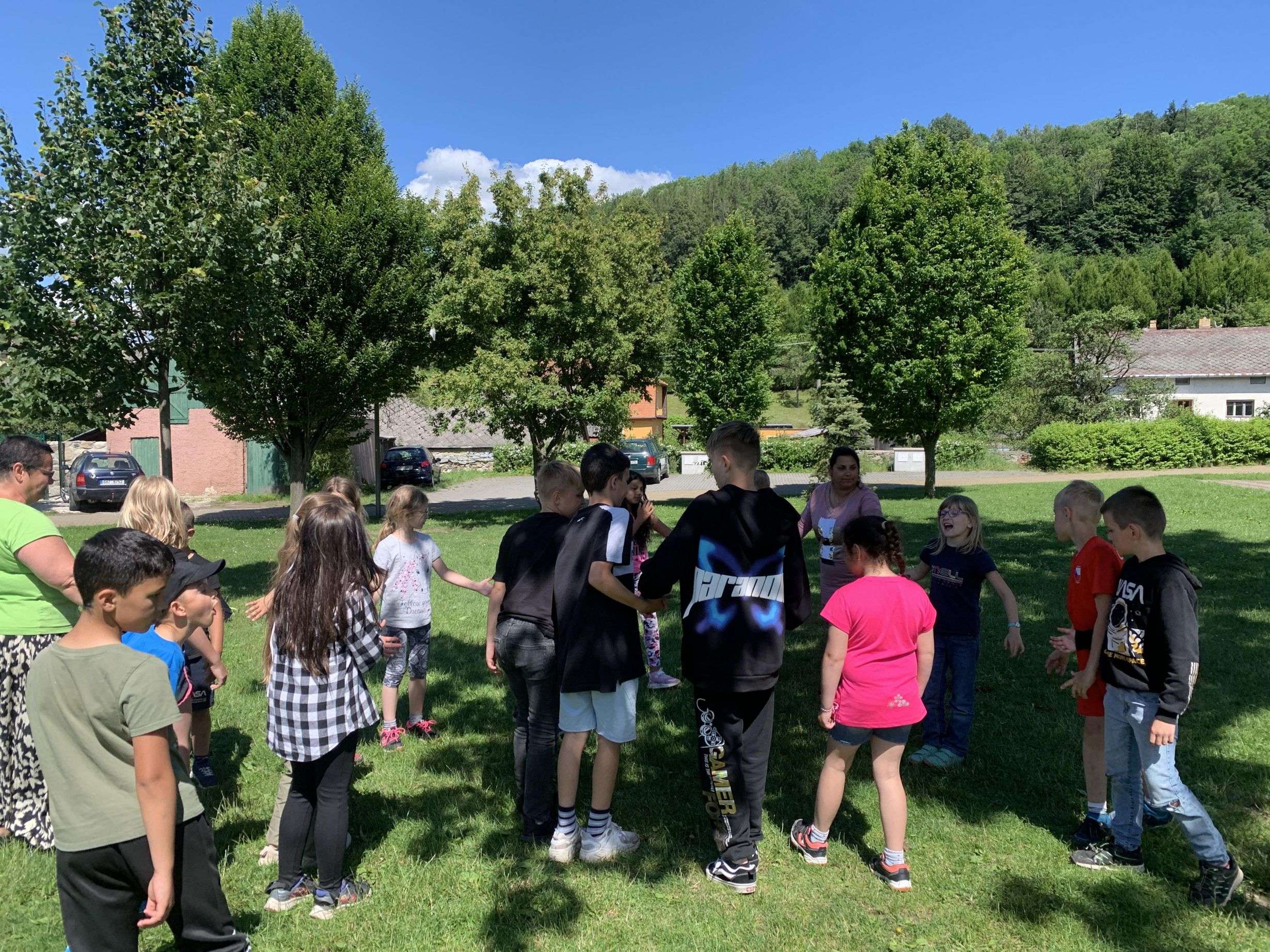 MDD – 11.6. jsme si v parku udělali Den dětí. Začali jsme přetahováním lanem, potom děti probíhaly pod roztočeným lanem, soutěžily v družstvech – holky proti klukům, hráli jsme Krvavého dědka, vyvolávanou, hutututu, hry s míčem. Všechny děti dostaly nanuk, sladkosti, dobrůtky a tři vítězové fotbalové kartičky. Počasí se nám vydařilo, děti byly spokojené. Děkujeme za pomoc paní Bagárové a paní Šebestové.