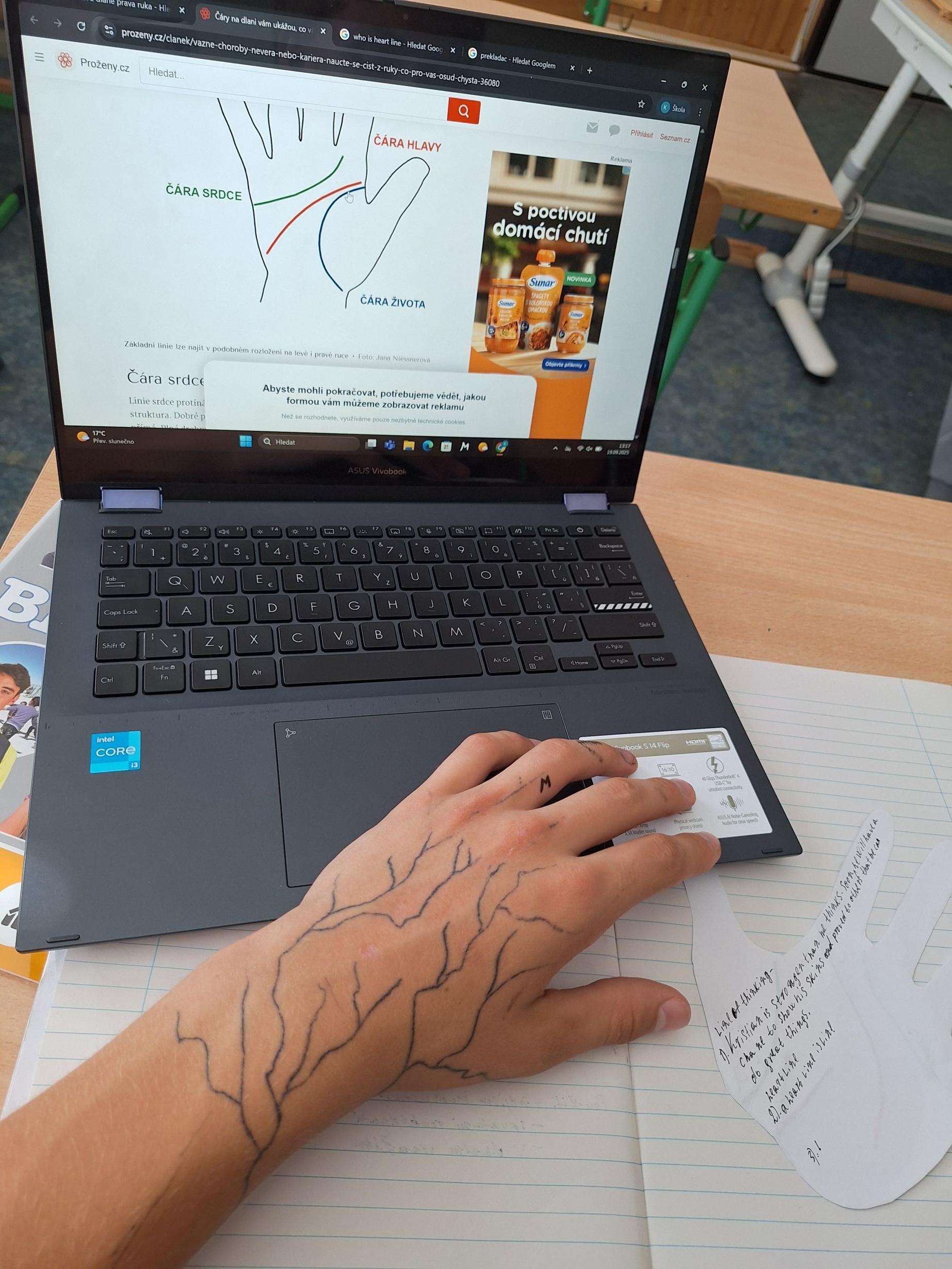 Nejdříve si zjistili, co jednotlivé čáry na dlani znamenají,